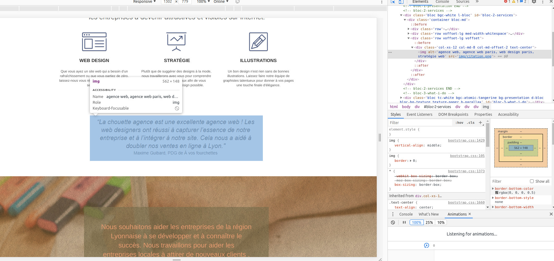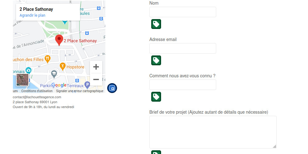 - pour un bon référencement local utilisation de la ville du commerce(Lyon)